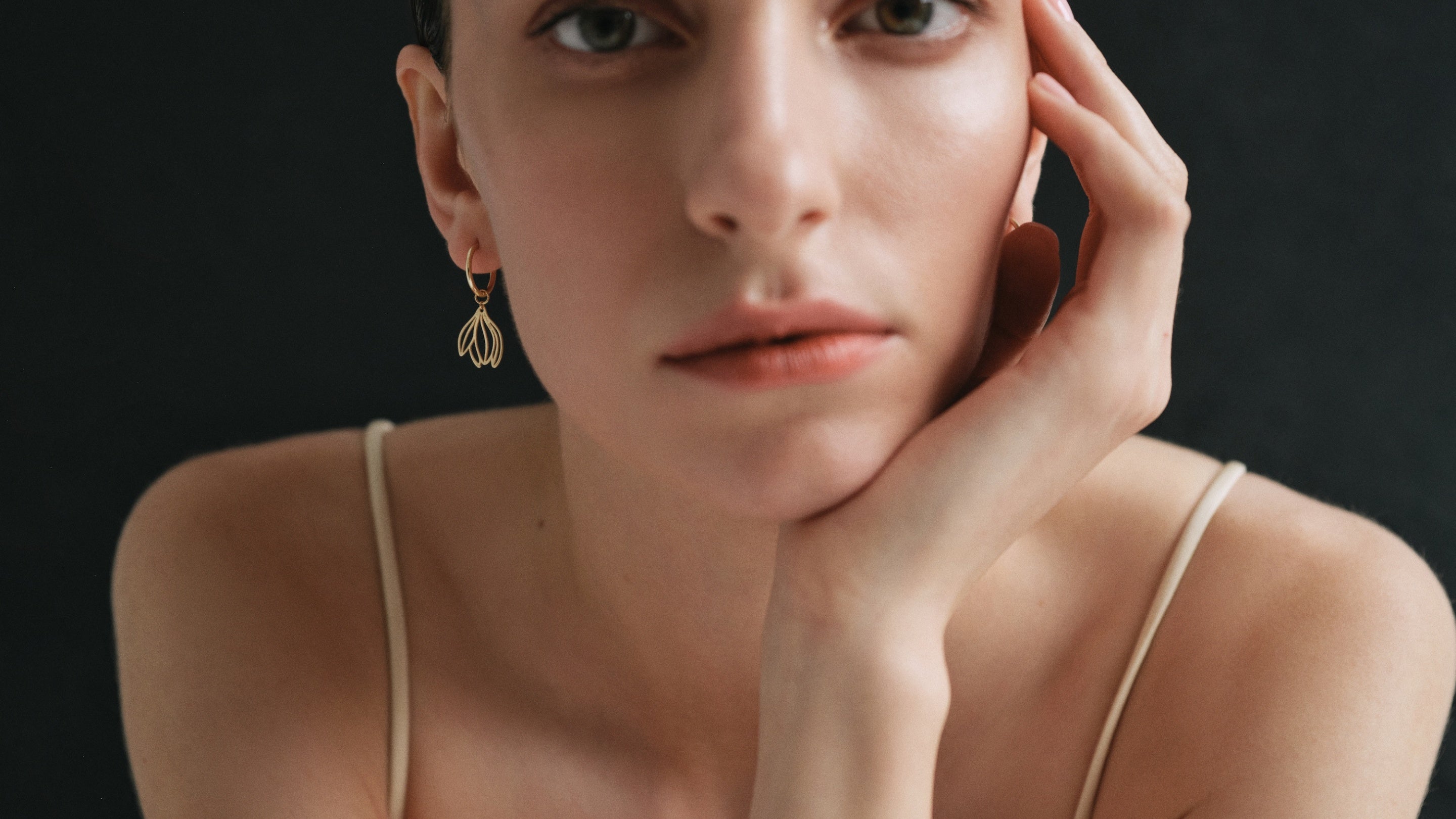 Cercei magnolie mini hoop din aur galbenCercei magnolie mini hoop din aur galben